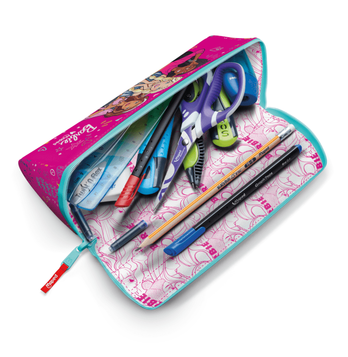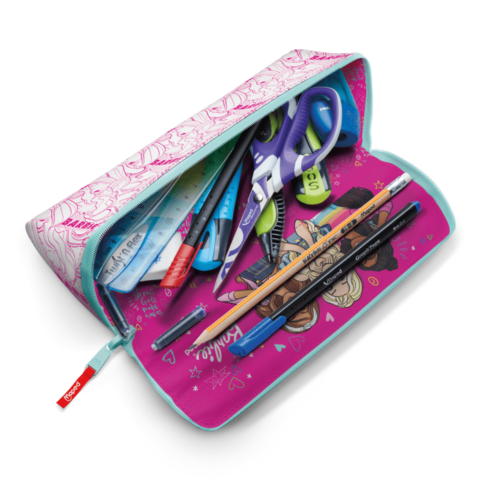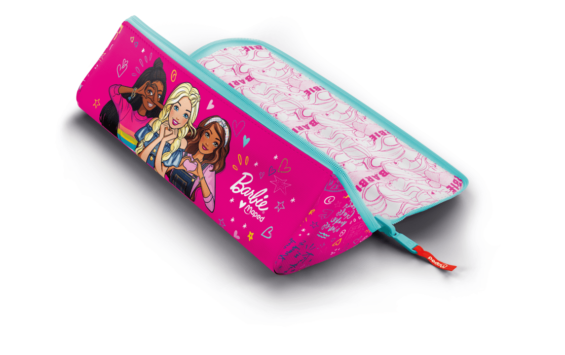 Η κασετίνα της Maped μπορεί να χρησιμοποιηθεί και από τις δύο μεριές. Στην μία μεριά μπορείτε να χρωματίσετε τα σχέδια με τα χρώματα που επιθυμείτε και έτσι να έχετε μια μοναδική στυλάτη κασετίνα. Έχει πολύ μεγάλο άνοιγμα και έτσι μπορείτε να βρείτε εύκολα το αντικείμενο που ψάχνετε μέσα στην κασετίνα σας. Αποτελείται από δύο στρώσεις 300D πολυεστέρα, οπότε είναι πολύ ανθεκτική. Μπορεί να πλυθεί. Αναμφισβήτητα λατρεμένη από όλους, η κασετίνα Barbie είναι μοναδική! Το ροζ ύφασμα καραμέλας, το μπλε παστελ φερμουάρ και οι τρεις υπέροχες φιγούρες Barbie είναι απλά ακαταμάχητες δίνοντας χαρά σε όλα τα κορίτσια!