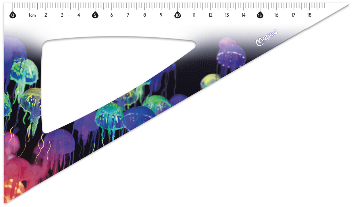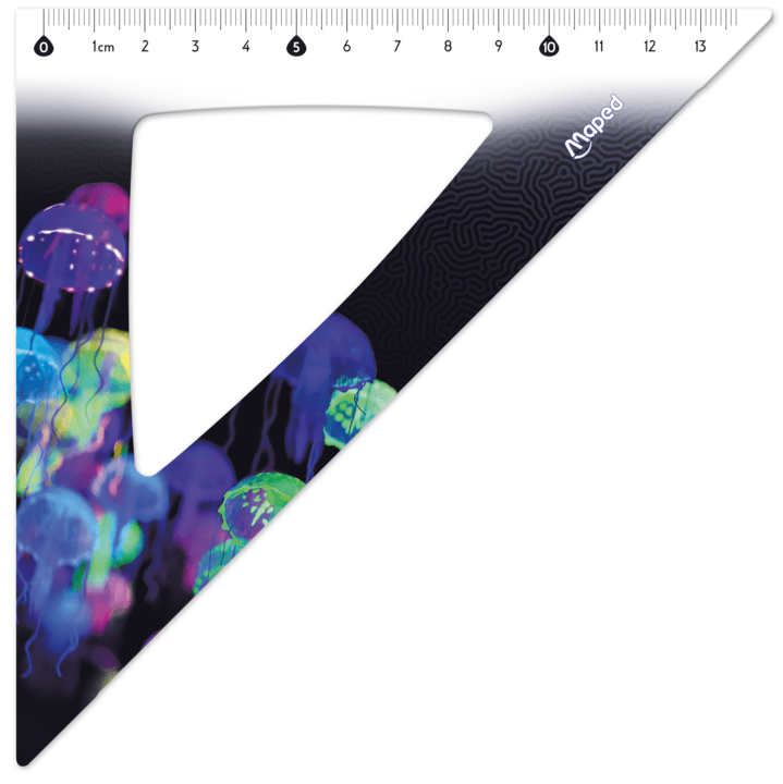 Το γεωμετρικό σετ DeepSea Paradise περιέχει ένα χάρακα 30 εκ, 1 ισοσκελές τρίγωνο 21 εκ, 1 ορθογώνιο τρίγωνο 21 εκ και 1 μοιρογωμόνιο 10 εκ. Οι αριθμοί στα γεωμετρικά όργανα είναι τυπωμένοι με μελάνι UV για μεγαλύτερη αντοχή. Τα μαθηματικά αποκτούν πλέον στυλ με τα όργανα γεωμετρίας DeepSea Paradise με σχέδια εμπνευσμένα από τον βυθό!