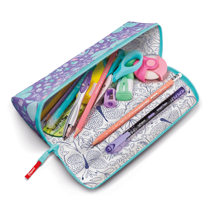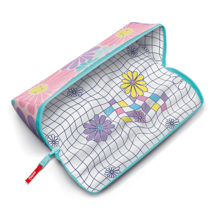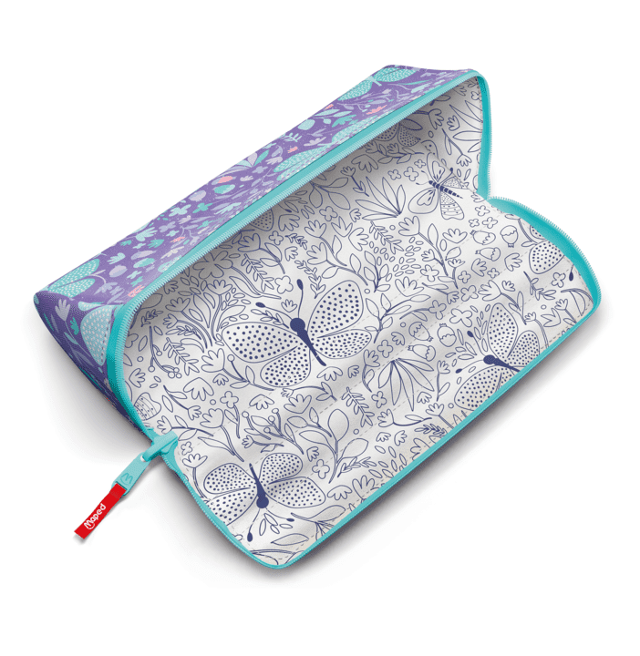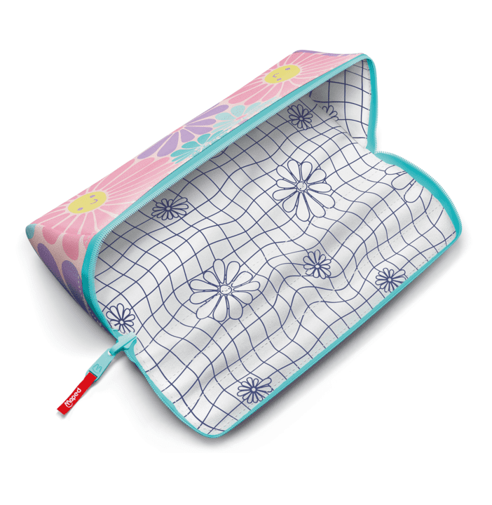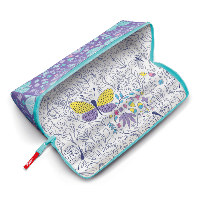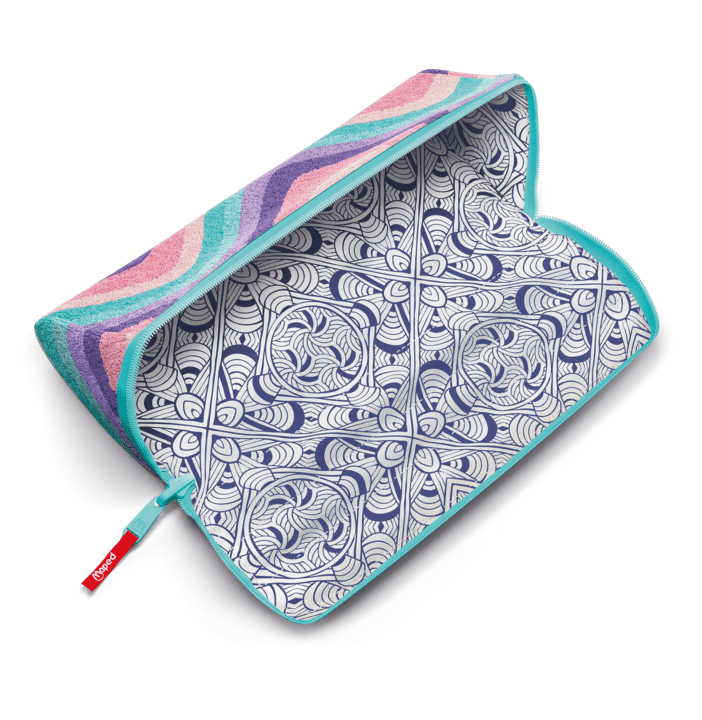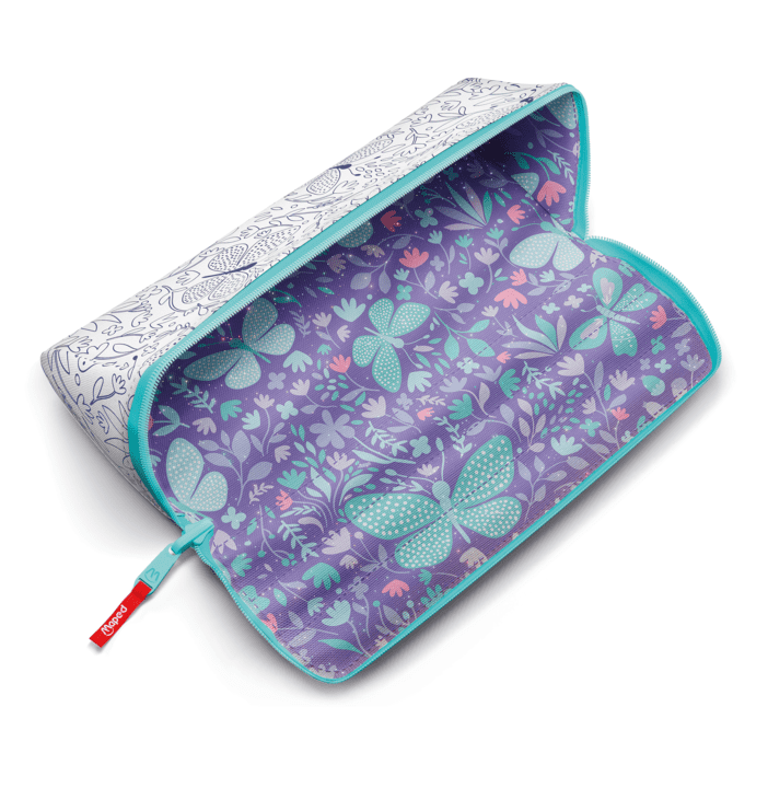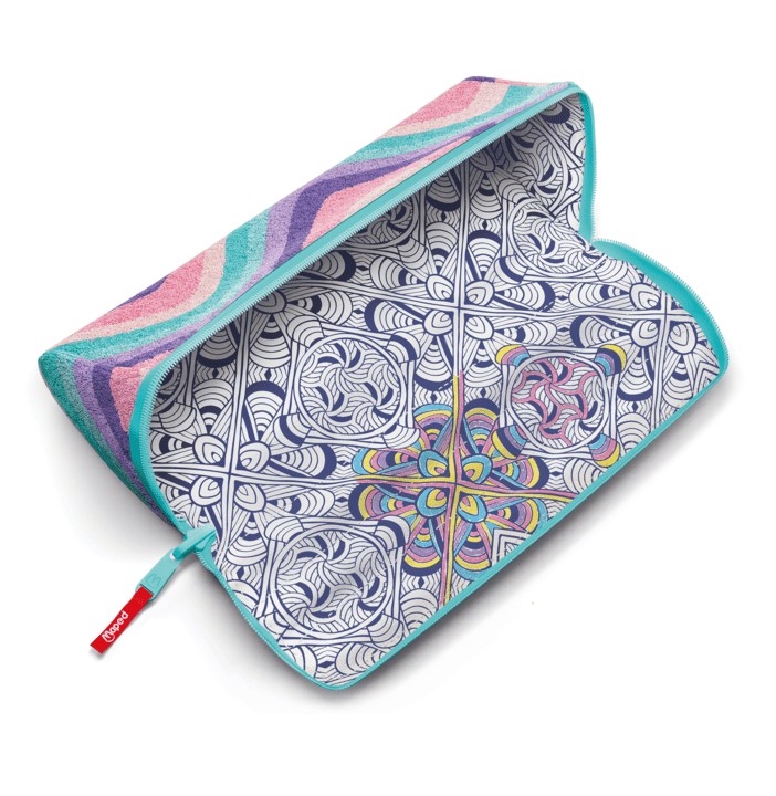 Η κασετίνα της Maped μπορεί να χρησιμοποιηθεί και από τις δύο μεριές. Στην μία μεριά μπορείτε να χρωματίσετε τα σχέδια με τα χρώματα που επιθυμείτε και έτσι να έχετε μια μοναδική στυλάτη κασετίνα. Έχει πολύ μεγάλο άνοιγμα και έτσι μπορείτε να βρείτε εύκολα το αντικείμενο που ψάχνετε μέσα στην κασετίνα σας. Αποτελείται από δύο στρώσεις 300D πολυεστέρα, οπότε είναι πολύ ανθεκτική. Μπορεί να πλυθεί. Οι διαστάσεις της κασετίνας είναι μήκος 230mm, βάθος 90mm και ύψος 75mm,