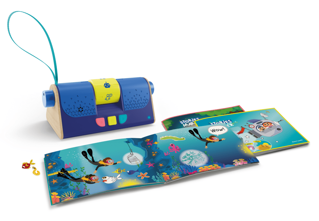 Οι ζωγραφιές σας, η ιστορία σας, η φωνή σας! Δημιουργήστε την δική σας ιστορία ή το δικό σας παραμύθι με τον Δημιουργό Ιστοριών. Η συσκευασία περιλαμβάνει 3 βιβλιαράκια με προσχέδια για να εμπνευστούν τα παιδιά να φτιάξουν την δική τους ιστορία, 6 φύλλα με αυτοκόλλητα και ένα μηχάνημα για να ηχογραφήσετε την ιστορία σας (80 λεπτά ηχογράφησης) χρησιμοποιώντας 7 παραμοφωτές φωνών για να γίνει η ιστορία σας πιο αστεία ή πιο τρομακτική! Αφήστε την φαντασία σας ελεύθερη και ηχογραφήστε ιστορίες ξανά και ξανά!