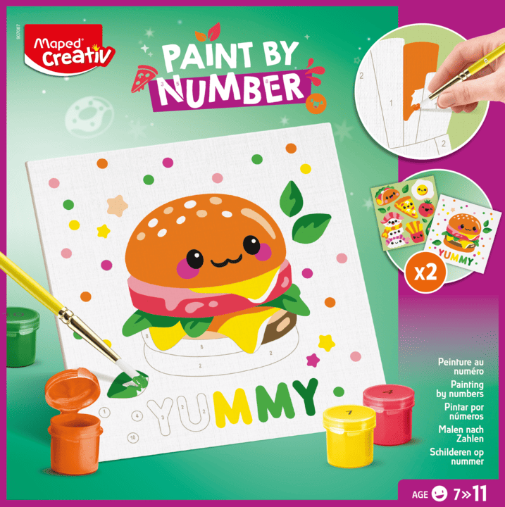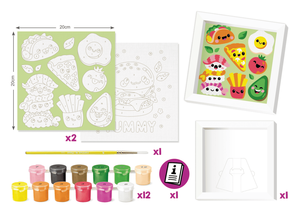 Η χρήση αριθμών για την δημιουργία εργών ζωγραφικής είναι εύκολη, διασκεδαστική και το αποτέλεσμα πολύ εντυπωσιακό! Οι αριθμοί εξαφανίζονται μόλις τους χρωματίσετε με το κατάλληλο χρώμα. Μια δραστηριότητα που αναπτύσσει την συγκέντρωση και την δημιουργικότητα των παιδιών. Η συσκευασία περιλαμβάνει 2 σχέδια με αριθμούς (για να τα χρωματίσετε) 12 βαζάκια 5,4ml ακρυλικής μπογιάς, 1 πινέλο Νο 4 και μια κορνίζα. Κατάλληλο για ηλικίες 7+