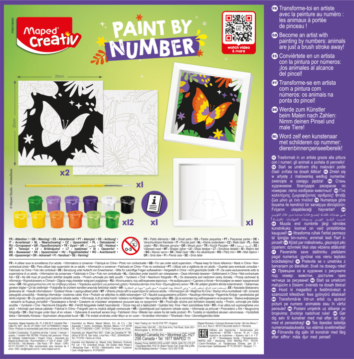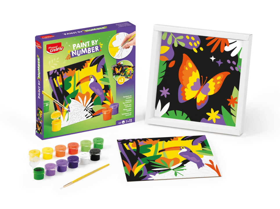 Η χρήση αριθμών για την δημιουργία εργών ζωγραφικής είναι εύκολη, διασκεδαστική και το αποτέλεσμα πολύ εντυπωσιακό! Οι αριθμοί εξαφανίζονται μόλις τους χρωματίσετε με το κατάλληλο χρώμα. Μια δραστηριότητα που αναπτύσσει την συγκέντρωση και την δημιουργικότητα των παιδιών. Η συσκευασία περιλαμβάνει 2 σχέδια με αριθμούς (για να τα χρωματίσετε) 12 βαζάκια 5,4ml ακρυλικής μπογιάς, 1 πινέλο Νο 4 και μια κορνίζα. Κατάλληλο για ηλικίες 7+